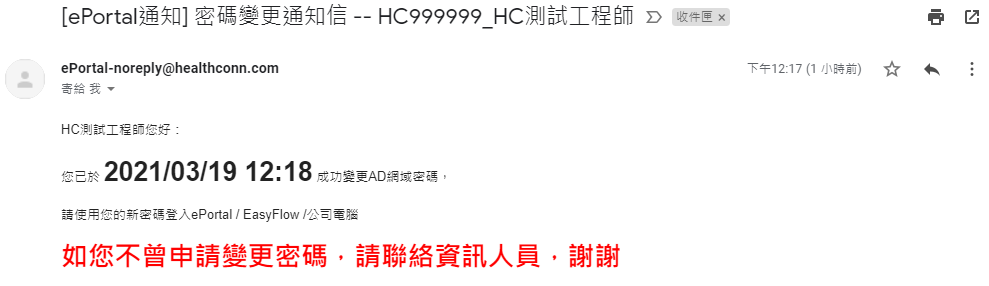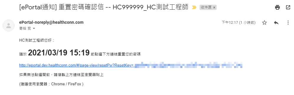 3. 若資料符合,系統將自動發送重設密碼信到您的公司信箱